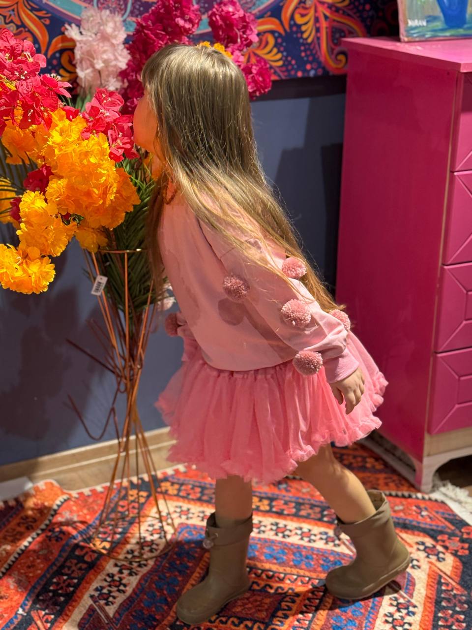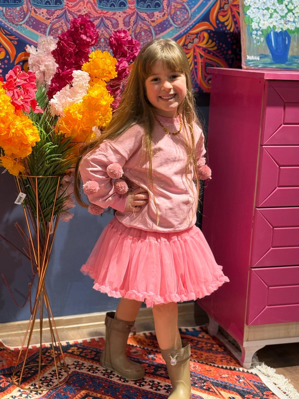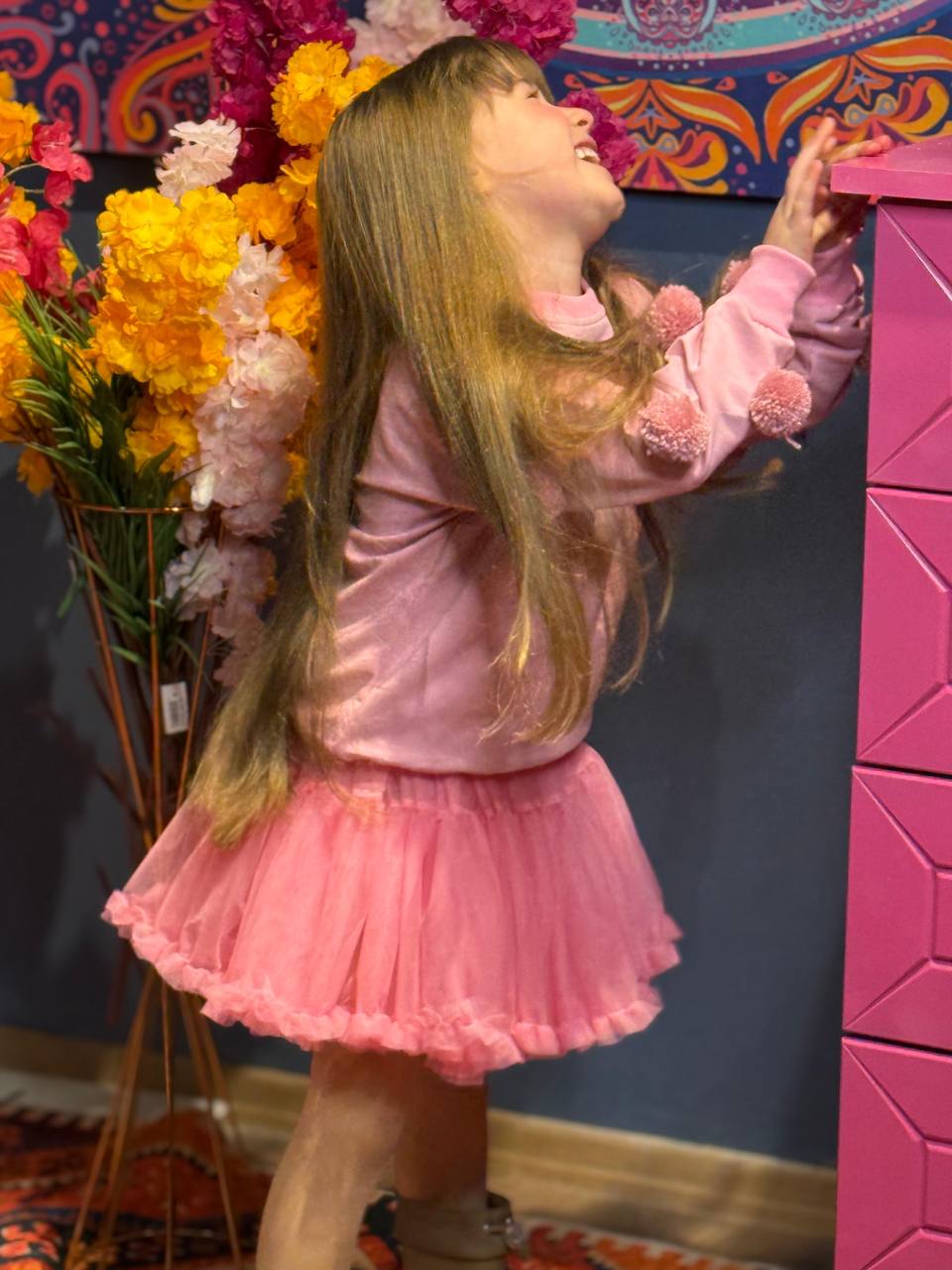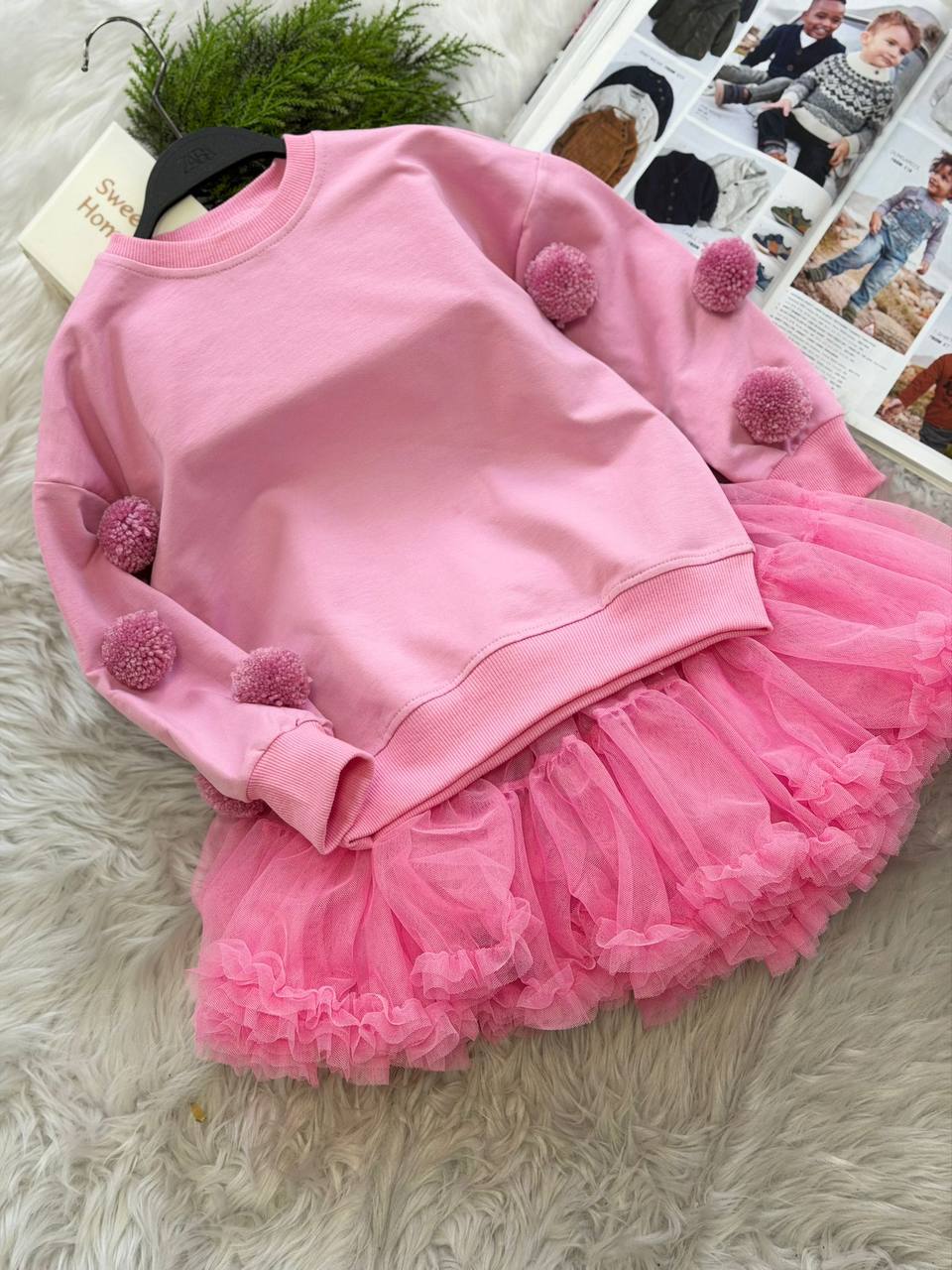 Tütü Etek & Ponponlu 2 İplik Sweat Takım Pembe